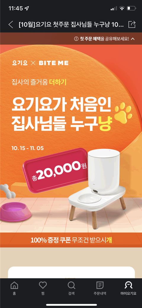 오늘도 야식 시키려고 처음으로 요기요 어플 켰는데첫주문 하니까 바잇미 만원 할인 쿠폰도 주더라?? (+요기요 만원도 할인됨)