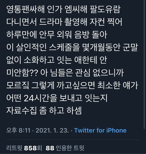 한명때문에 스텝+배우들 무슨 마음 고생한건지 ㅈㄴ빡침..
