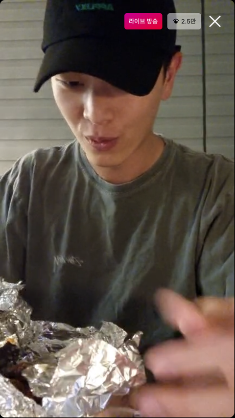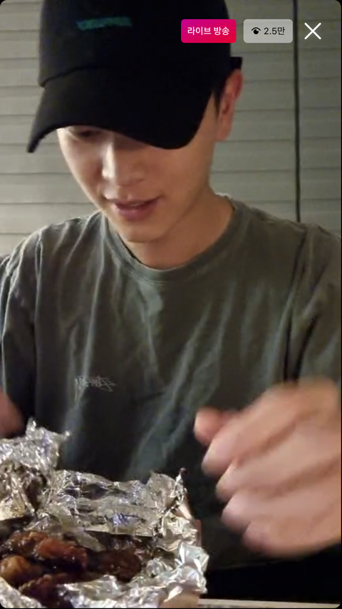 “와~~~우 얼마만의 먹방이냐” 와 함께 행복한 포정으로 치킨먹방중인 성뎨