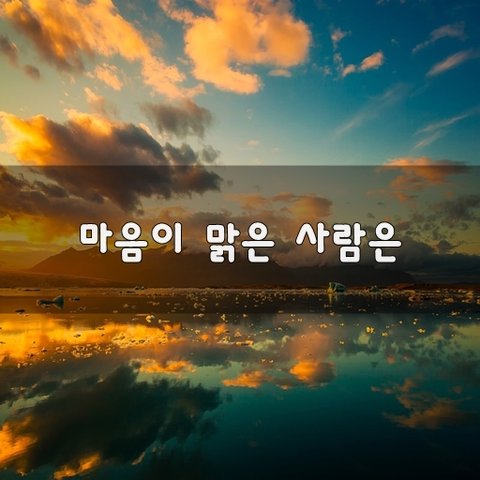 ♥ 마음이 맑은 사람은 ♥ 마음이 맑은 사람은 아무리 강한 자에게도 흔들리지 않고마음이 어두운 사람은 약한 자에게도 쉽게 휘말리기 마련입니다. 당신이 후자이거든 차라리 아무 것도 보이지 않는 까만 마음이 되십시요 까만 조가비가 수많은 세월 동안 파도에 씻기어 하얀 조가비가 되는 것처럼 자꾸만 다듬어 맑음을 이루십시오. 맑음이 되려면 먼저 최초의 자신을 잃지 말아야 합니다.가치관이 분명하고 그에 따르는 품행이 명백한 사람은 어느 경우든 자신을 되찾기 마련입니다. 언제 어디서나 자기를 잃지 않는 사람 그리하여 언제 어디서나 의젓한 사람얼마나 아름다운지요. 바닷가의 수많은 모래알 중에서도 그저 딩굴며 씻기며고요하게 나를 지켜낸 조가비처럼 바로 내 안의 주인이 되는 것입니다. 주인이 되거든 옛날을 생각하지 마십시오.주인이 되어 옛날을 생각하면 미움이 생깁니다. 미움은 언뜻 생각하면 미움을 받는 자가 불행한 듯하지만 실상은 미워하는 자가 참으로 불행한 자이기 때문입니다. 날마다 미움없는 하루속으로그렇게 곱게곱게 씻겨 가십시오. - 좋은글 中 -