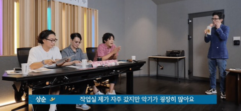작업실에 수 많은 악기들이 많은데도