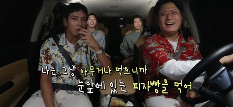그리고 그냥 눈앞에 있으니까 피자빵을 먹은 정용화