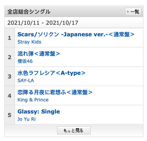 타워레코드 싱글 주간차트 [10/11~10/17]