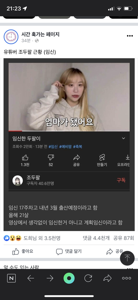계획임신 절대 아님 조두팔 임신하고 휴식기 가졌다가 복귀할 때 영상 올린 거 보면 요즘 멘탈이 나가는 일이 있었다 지금은 말 못 드린다 이렇게 말했음 그 일이 임신이었나봄