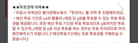 1차 예선에서는 40위만 유지해도 되는 점 유의해 주세요! (1, 2차 통틀어 무료 5표는 1계정 당 1번만 가능)