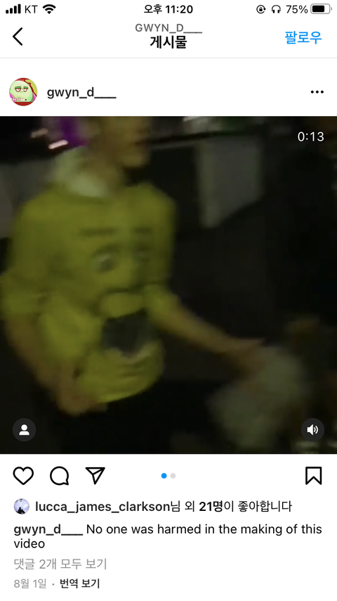 루카 인스타 사진에 루카친구가 태그 되있길래 걍 그 친구 프로필 들어가봤는데 어떤 영상이 올라와 있더라고 그래서 봤거든 ㅋㅋㅋㅋㅋ 근데 루카가 뭐 담 넘을려다가 부딪히는? 그런 영상 이쓴ㄴ데 함 봐봐 ㅎㅎ