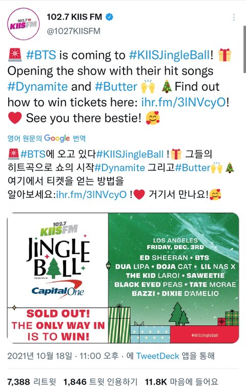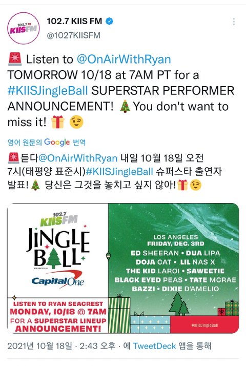 징글볼에서 아래와 같이 라인업을 다 발표하고 마지막으로 미국시간 기준 다음날 오전 7시에 슈퍼스타를 발표한다고 어그로를 끔