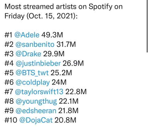 11. 마지막으로 전세계 가장 스밍량 많은 가수 순위