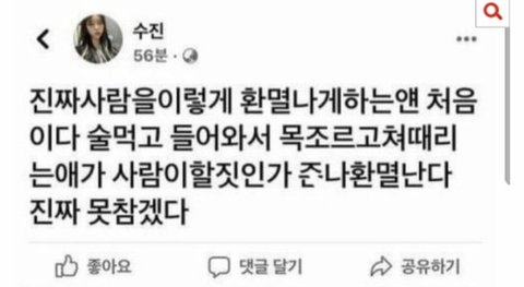 지금의 애아빠가 한때 술 먹고 들어와서 목 조르고 폭행하고,헤어지자고 언급할 때마다 폭행을 일삼았던 그 사람 아닌가..