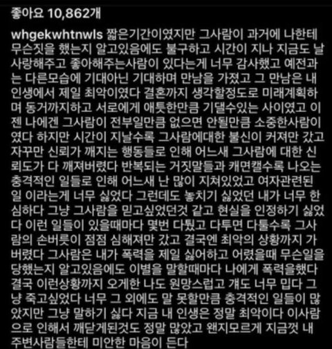 지금은 애도 생겨서 나중에 돼서 큰 트러블이 생기면 더욱 힘들어질 것 같고 정말 상상도 하기 싫은 일이 발생할 수 있으니까.. 여긴 증거들이 있고