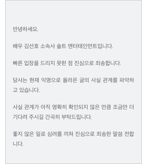 사실이 아니면 당연히 빨리 아니라고 했겠지 뭔 사실관계 파악까지 시간이 오래걸림..? 누가 일부러 소문 퍼트려서 나락 가게 하려고 그랬다는 썰도 있던데 만약 아니라면 과연 사실관계 파악이고 자시고 이미지가 있는데 시간을 이렇게까지 끌었을지가 의문임 광고계들 다 줄줄이 손절하고 있다던데