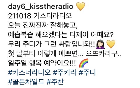 그냥 디제이석이랑 찰떡으로 잘어울리는데 심지어 진짜 잘해!!! 인스타 올라온 글 읽는데 너무 예뻐해주셬ㅋㅋㅋ울 주디 화이팅야..♡