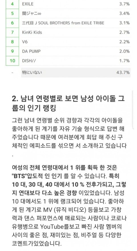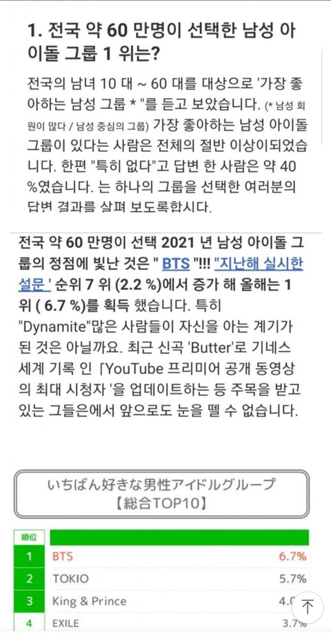 2021년 여론조사 60만명 대상 10대부터 50대까지 1위가수