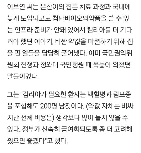'기적의 항암제'라고 알려진 킴리아는 더이상 치료방법이 없는 백혈병 아이들의 82프로가 관해가 되는 약입니다.