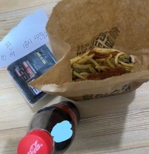 +) 하도 제가 튀김이랑 콜라, 무 다 먹었다는 소리를 하셔서 사진 첨부합니다.김말이 한 입 먹었고 다른 건 까지도 않았습니다. 혹시라도 찾아와서 내놓으라할까봐 아직까지 못 버리고 있었습니다.