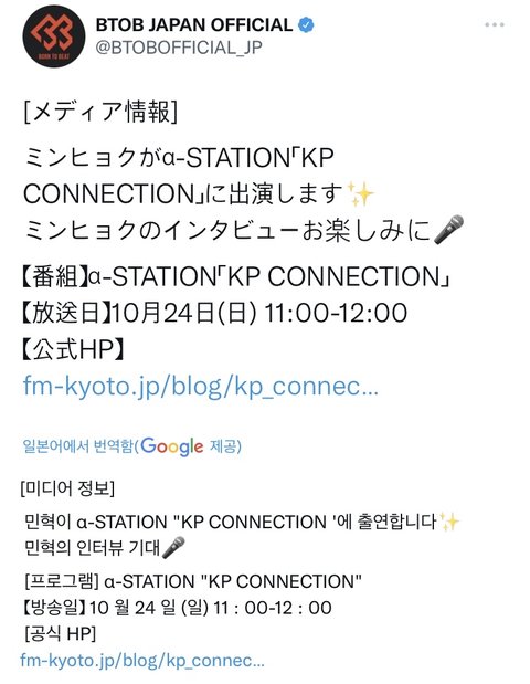 근데 트윗 번역한 건 민혁이만 출연한다는 것 같구