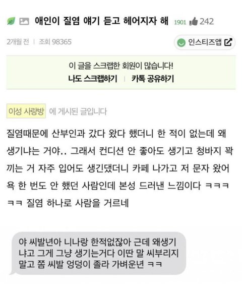 질염 이야기 꺼내자마자 헤어지자는 남친