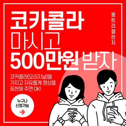 챌린지 제목: 코카콜라 마시고 500만원 받자!