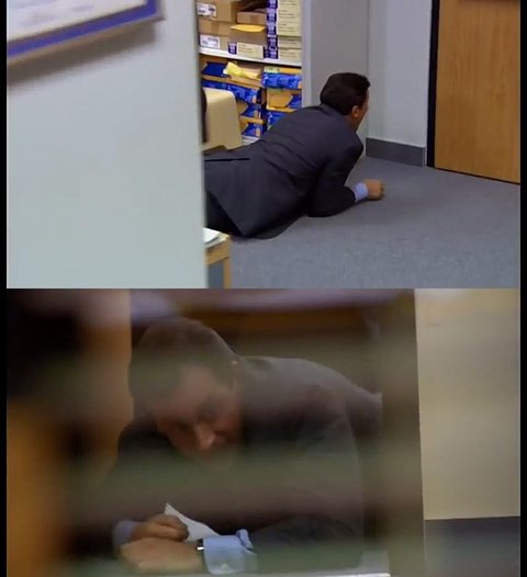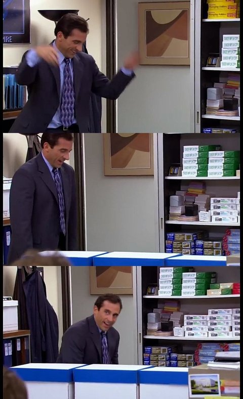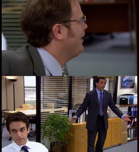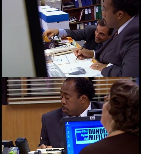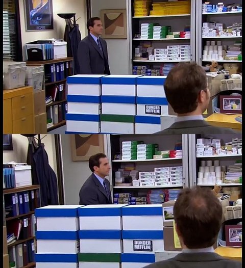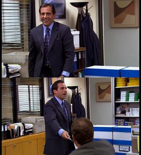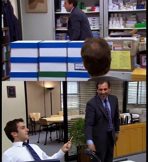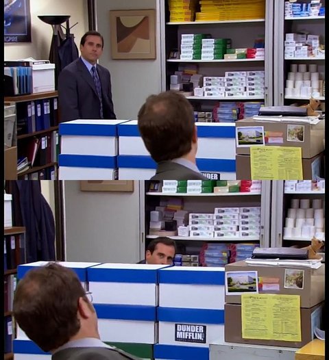 드와이트 : 마이클! 창고에서 펜 가져다 줄 수 있음??