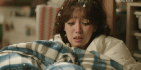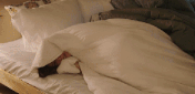 안 들키기위해 이봄은 이불 뒤집어쓰고 도망