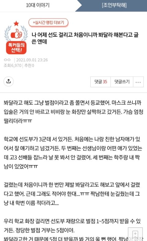 그 일 후로 걔 볼 때마다 속상하고 우울해서 계속 피해 다녔어. 그러다가 걔가 갑자기 나보고 왜 피해다니냐길래 그냥 물어봤어. 내 이름 진짜 적었냐고. 나 진짜 벌점이냐고.