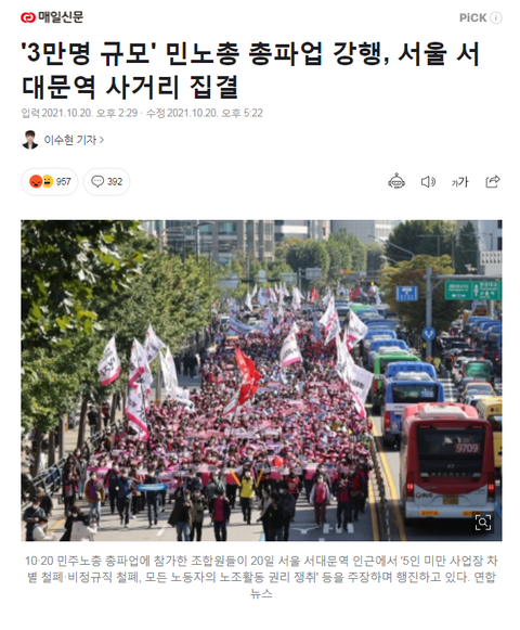 '3만명 규모' 민노총 총파업 강행, 서울 서대문역 사거리 집결 (naver.com)