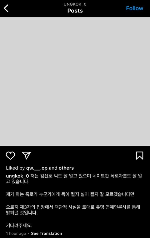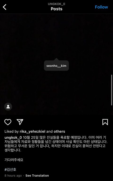 +++++이 분 폭로 안한대..걍 팔로워 모으려고 그런건가 관종인가 그냥 아무관련도 없는 사람이었을 수도..관심끌려고 그런건 아니였겠지..? 이제와서 일이 더 커진다고 하는데..그거 감안하고 폭로하려 했던거 아닌가