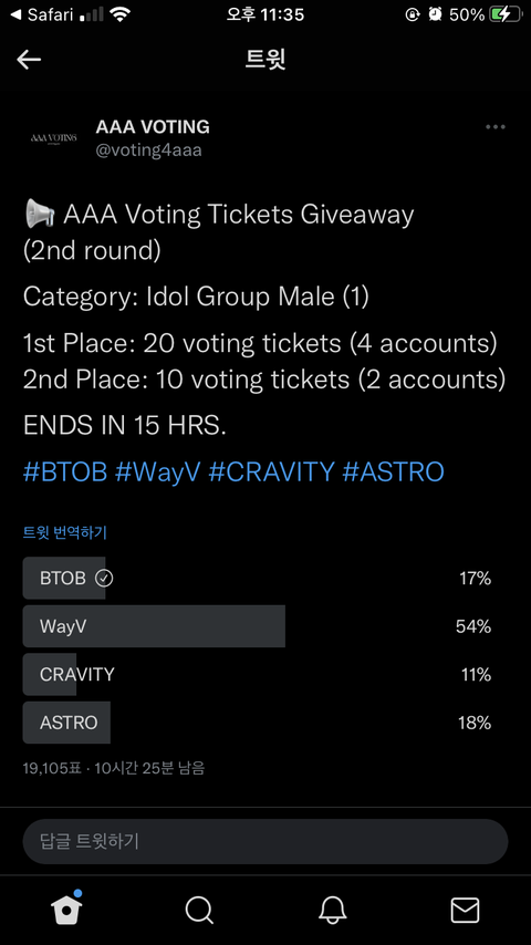 그냥 틧터 링크 타고 들어가서 BTOB 누르면 돼