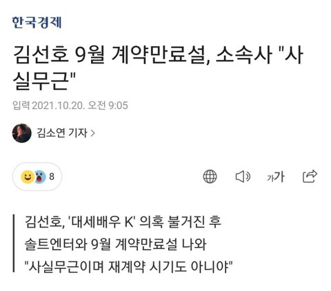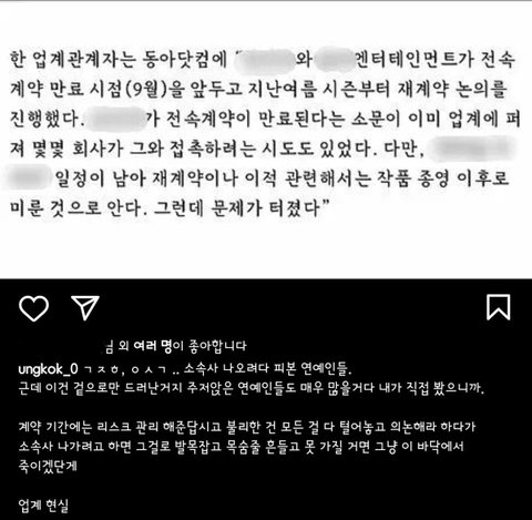 근데 소속사랑 계약기간 끝났다는 잘못된 기사 나오니