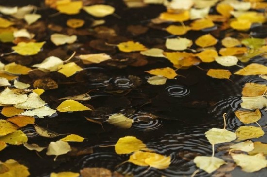 가을 낙엽 위에는 겨울비가 내리고 있습니다.