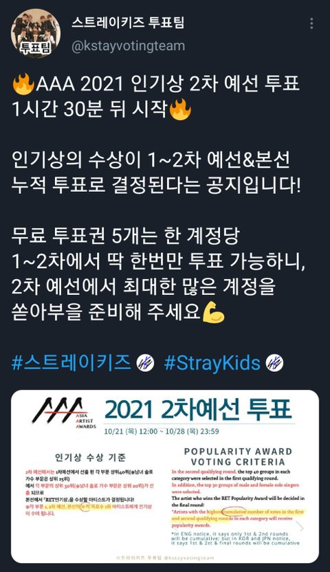 AAA 2차 투표 오늘 12시부터 시작인데 투표 누적+무료 투표 5개는 2차까지만 사용 가능(본선에서 사용 불가) 이니까 2차 투표 기간 내에 계정 여러개 만들어서 다 털자