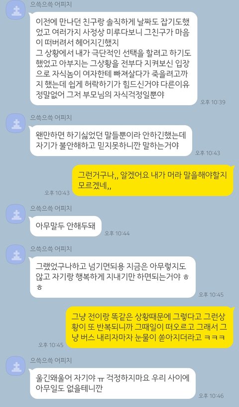 그러더니 하는말이 이전에 만나던 친구랑 헤어지고 3년동안 연애안하고 돈만 모은다고 신신당부했는데 아버지가 잔소리 하신다고 그래서 그런거라고 이해해달라고 했습니다