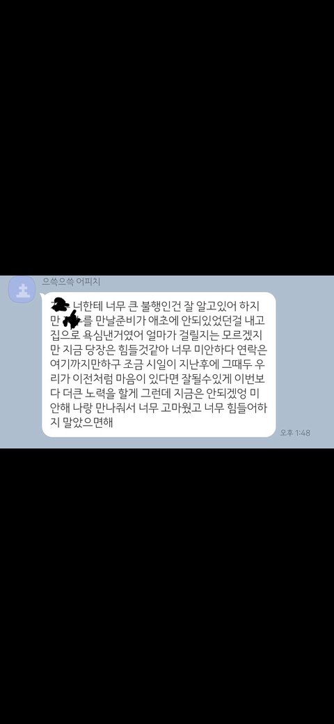 저는 너무 갑작스럽고 받아들이기 힘든마음에 카톡으로 계속 매달렸고, 그 사람은 계속 읽씹을 했고, 마지막으로 보낸게 제가 몇일전부터 몸이 좋지않아 증상을 찾아보니