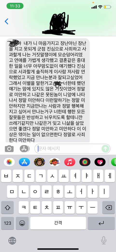그 여자한테 디엠을 보내니까 그떄서야 그 사람이 사과문자가 오더라구요... 중대한 결혼얘기를 아무생각없이 해서 미안하다, 저한테 한 말들은 마음에도 없는 거짓이었다고....