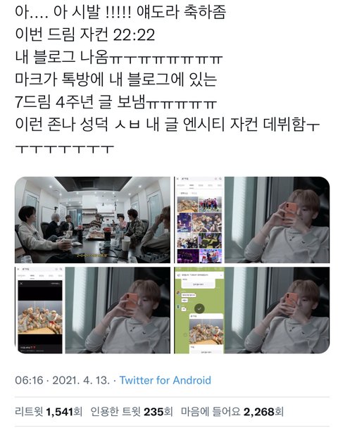 그런 단톡방에 물들어서 마크는 드프 인스타 검색하고 드림 블로그 검색하고 칠드림 유튜브 보고 드림 검색 조카 하고 천러랑 24시간 붙어있어서 드림애들 지시만 듣는데 우리가 투표해봣자 마크는 지금 드림투표하고잇음ㅋㅋ