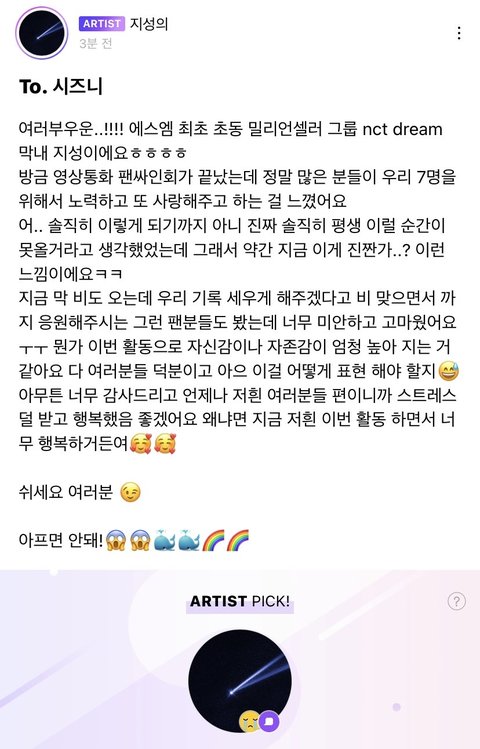드림애들 저런거 줄줄이 꿰뚫고 있어서 해찬이가 드림 초동 막날에 실시간으로 백만장뚫는것도 트위터보고 중계해줫다 할정도로 성적 빠삭함