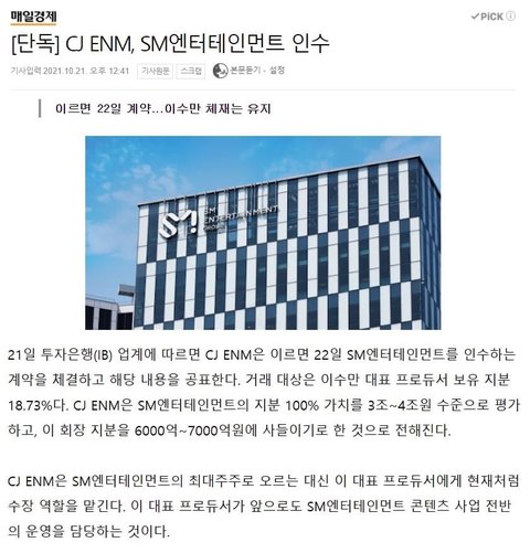 CJ가 스엠 인수햇대