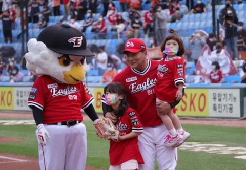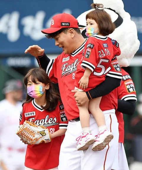 얼마 전 김태균 은퇴식 때 큰 딸과 작은 딸인데,