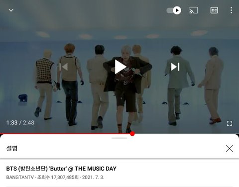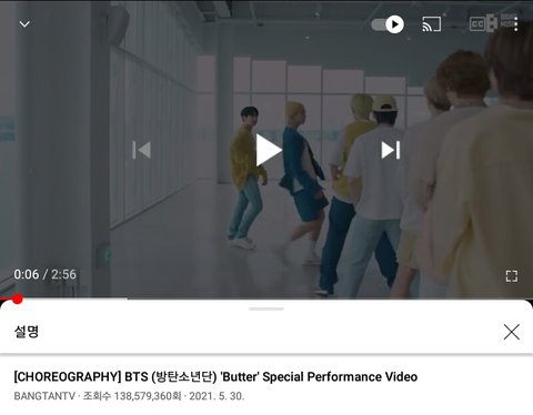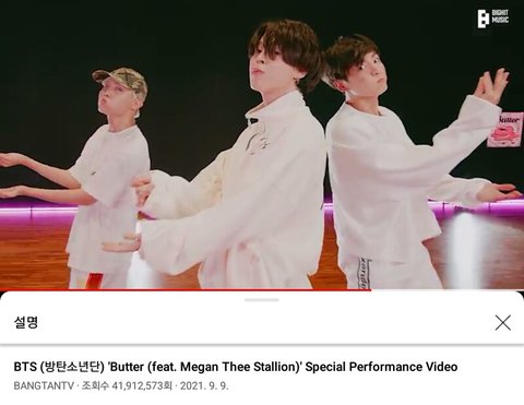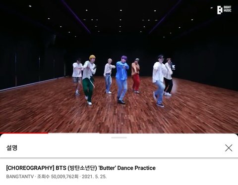 2) 안무 영상 - 2021.05.25 : 약 5000만 뷰 (방탄 채널에만 올라옴)