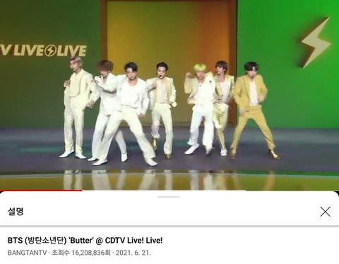 6) CD TV live live! - 2021.06.21 : 약 1600만 뷰 (방탄 채널에만 올라옴)