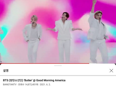 7) 굿모닝 아메리카 - 2021.06.21 : 약 1400만 뷰 (방탄 채널에만 올라옴)