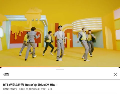 9) Sirius XM - 2021.07.03 : 약 2300만 뷰 (방탄 채널에만 올라옴)