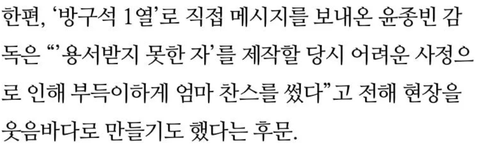윤종빈 감독 졸업 작품인 '용서받지 못한 자' 찍을 때 제작비가 부족해서