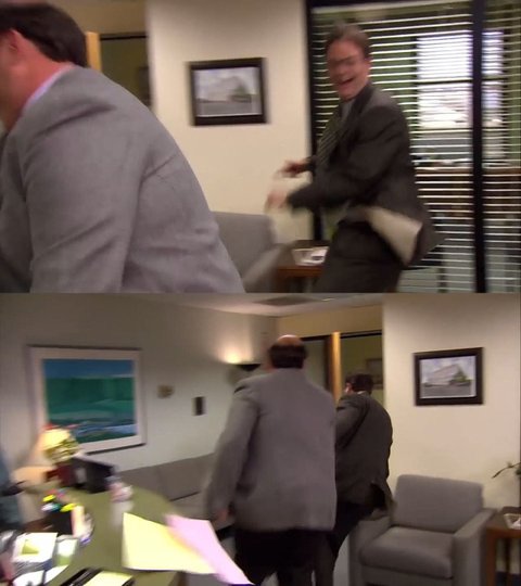 드와이트 : 레디? 고! 최대한 깊숙이 찍어보셈