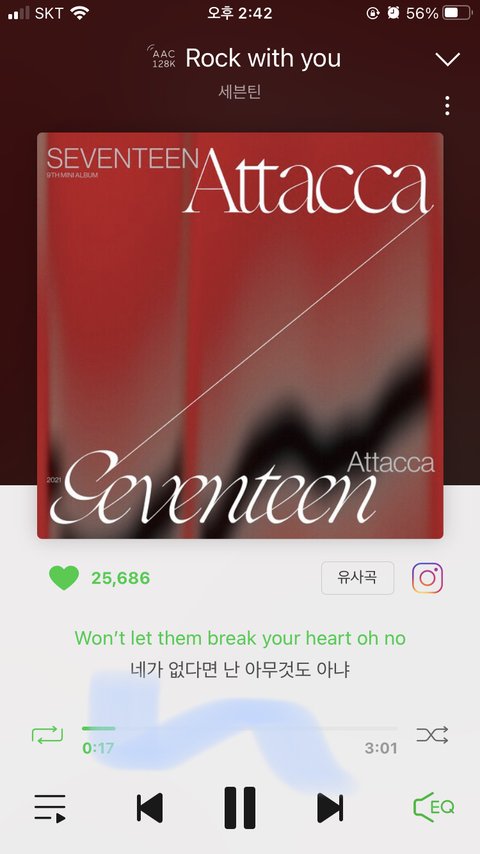ㅆㅂ평소에 셔플틀고 듣는데 셔플끄는거 깜빡하고 그상태로 스밍돌리고있었음 아 아…….