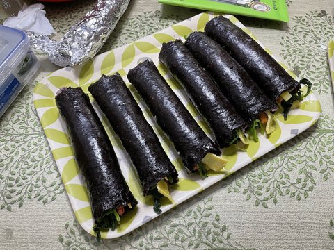 김밥을 30,40줄씩 싸서 종일 김밥만 먹었네요.
