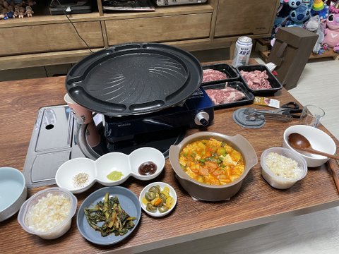 생일선물로 조르고 졸라 깜짝으로 받은 불판상.