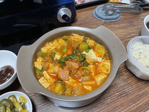 제가 좋아하는 두부를 듬뿍 넣고 맛있게 해주었습니다.
