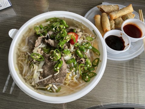 소고기쌀국수와 튀김들.
