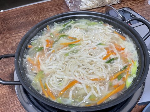 첫 개시한 날 칼국수를 양껏 끓여먹었습니다.